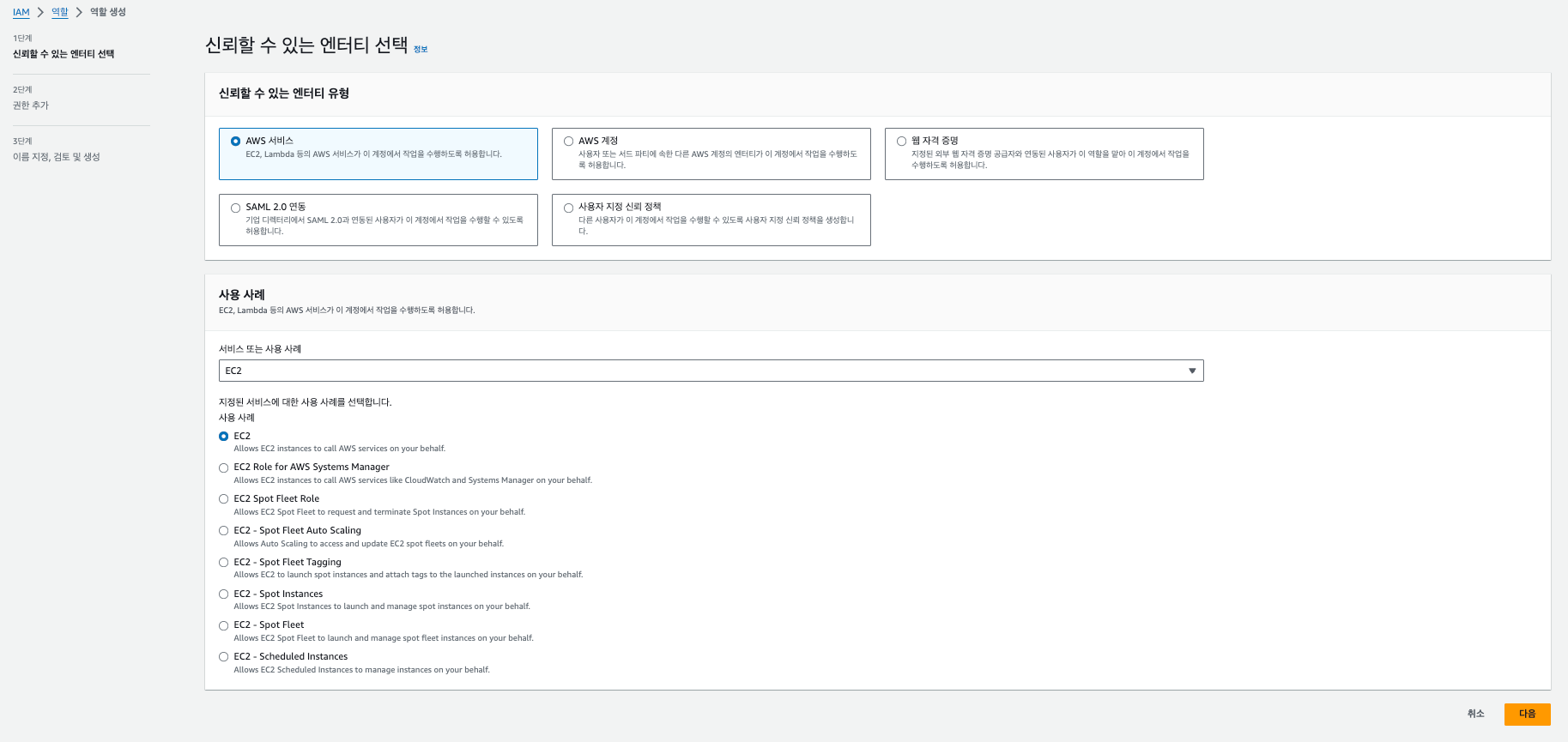 다음으로 인스턴스에 IAM 역할을 적용한다.