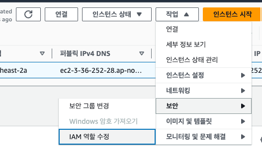 생성한 IAM 역할을 EC2 인스턴스에 적용하여 필요한 권한을 부여한다.