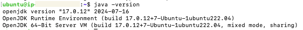- 설치 후 java -version 명령어로 Java 설치가 성공적으로 되었는지 확인한다.