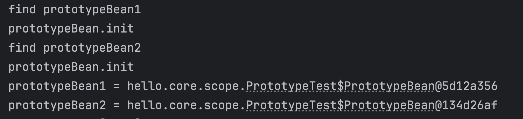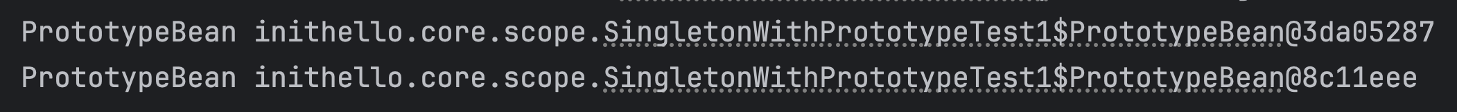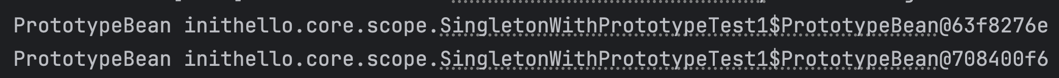 - 프로토타입 빈을 두 번 조회하면 각각 다른 스프링 빈이 생성되고, 초기화도 두 번 실행된다.