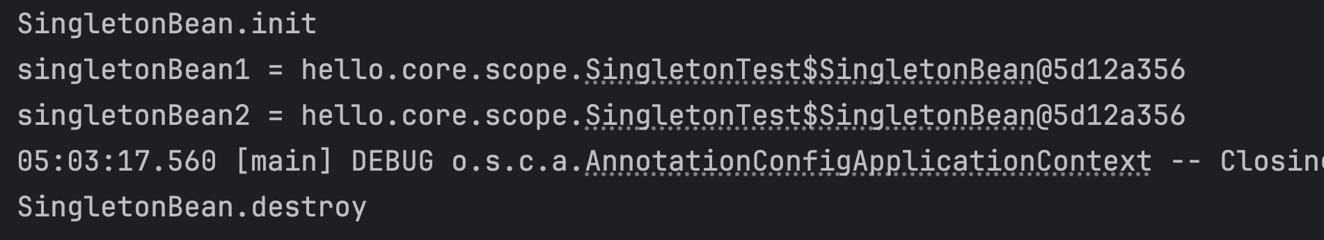 SingletonBean singletonBean1 = ac.getBean(SingletonBean.class);