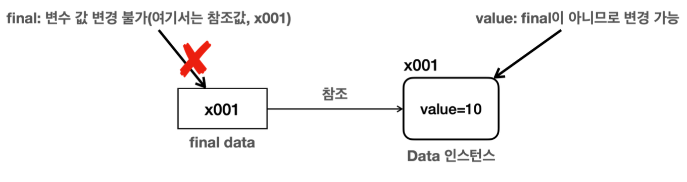 1. 변수에 final 키워드가 붙으면 값을 변경할 수 없다.