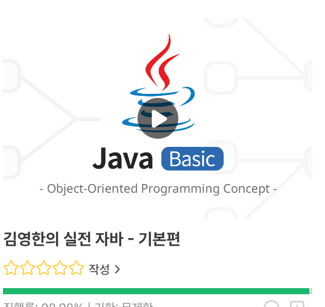 자바 기본 편 강의를 완강했다.